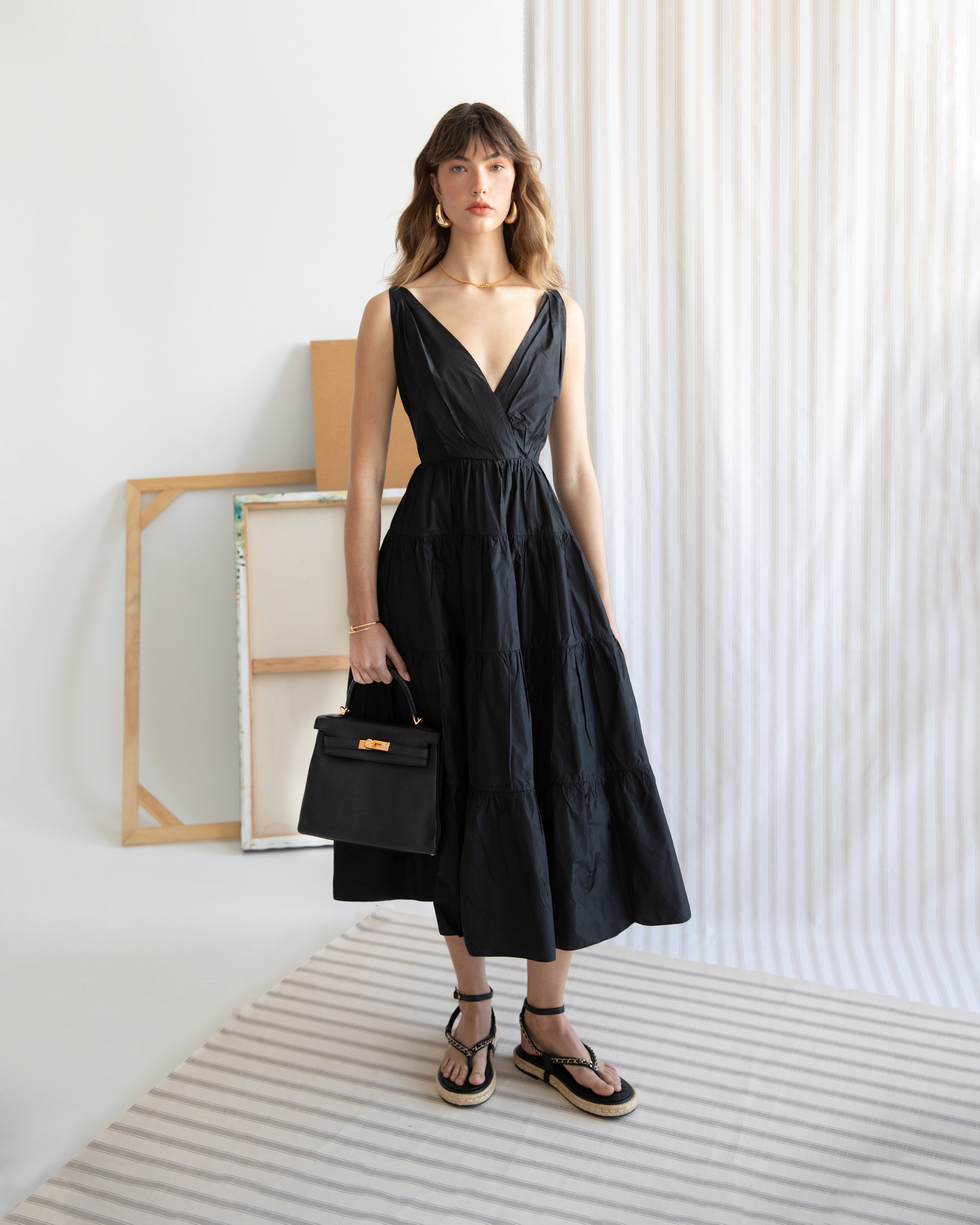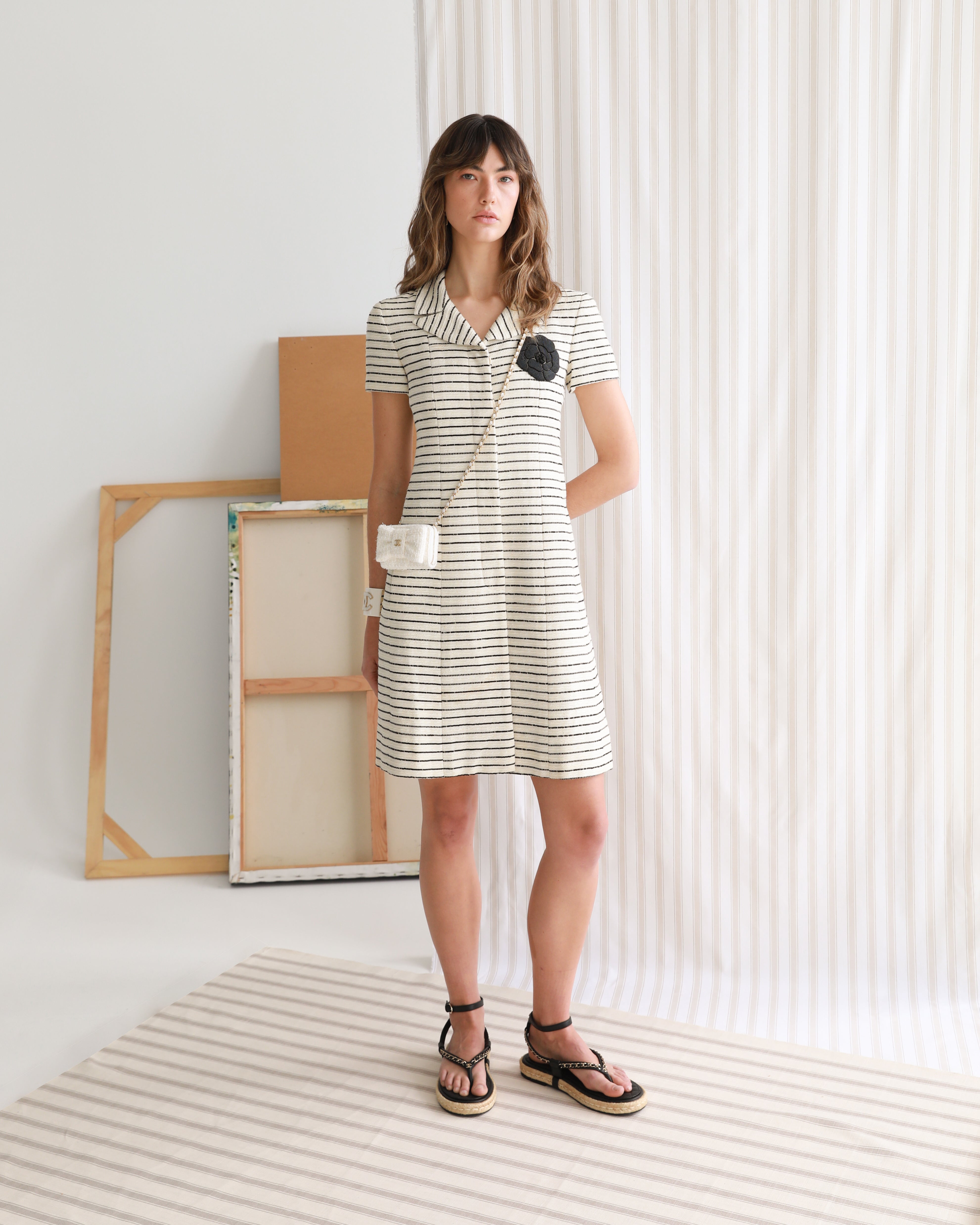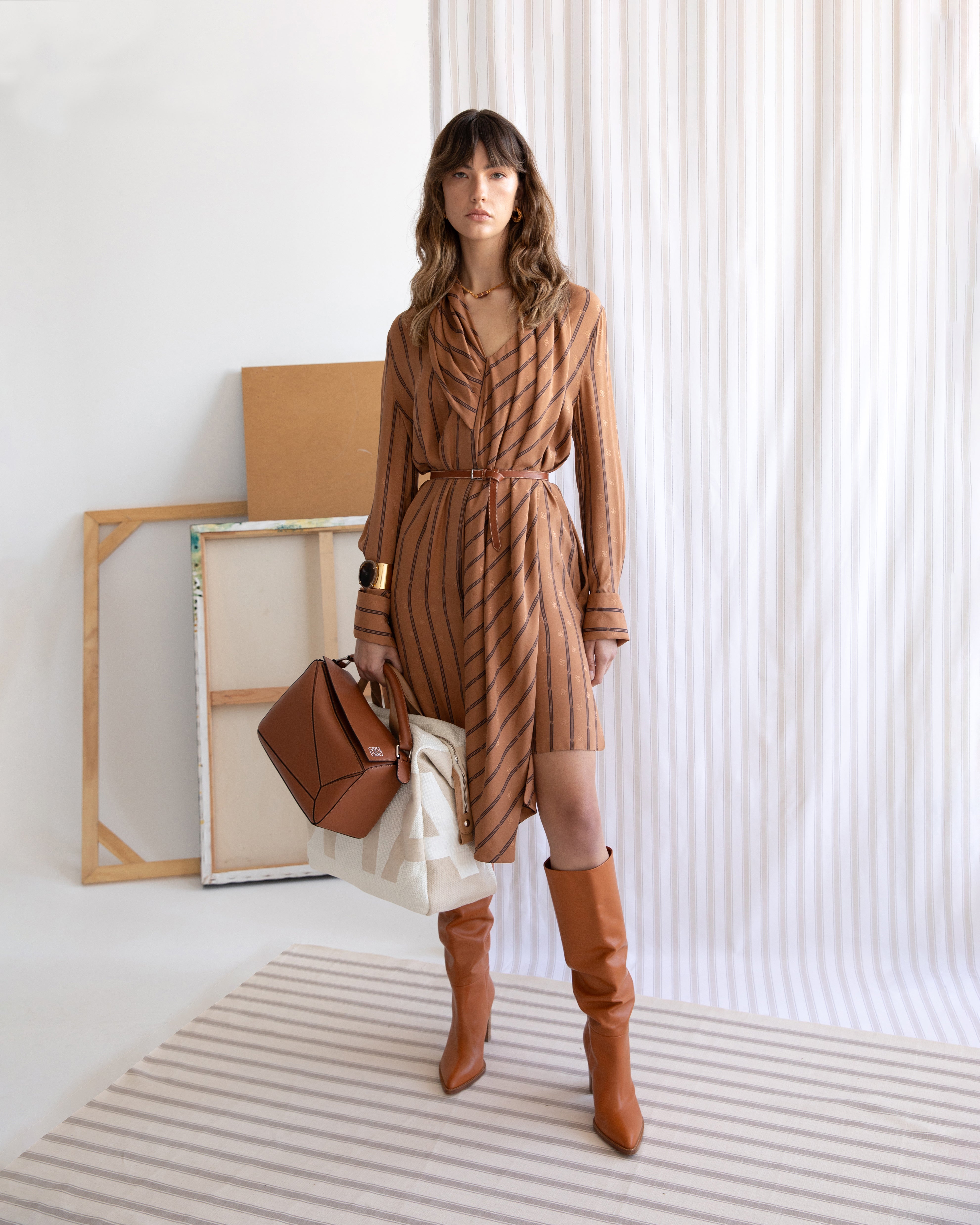 Fendi Tan Striped Silk Karligraphy Dress IT 42