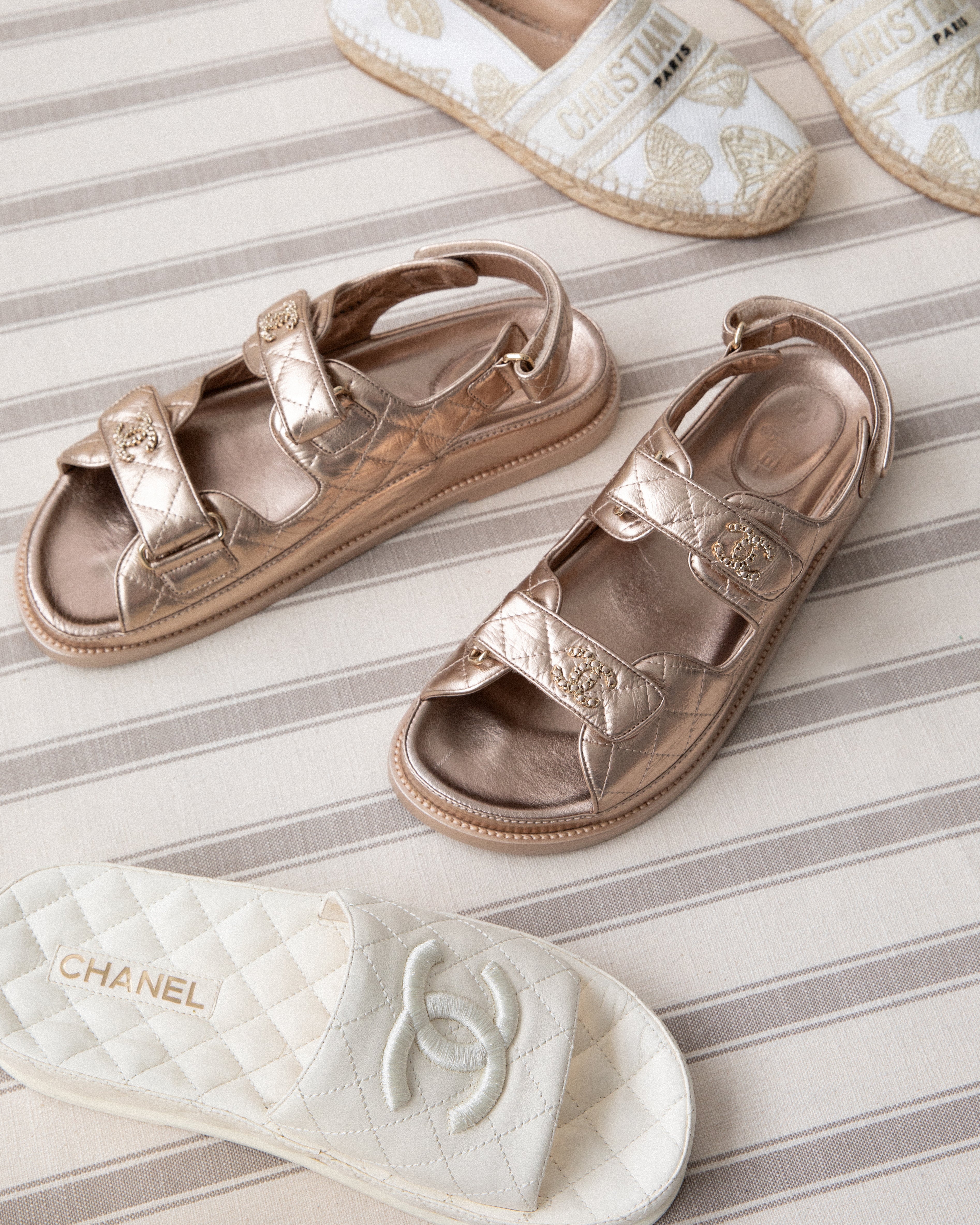 Fendi Tan Striped Silk Karligraphy Dress IT 42